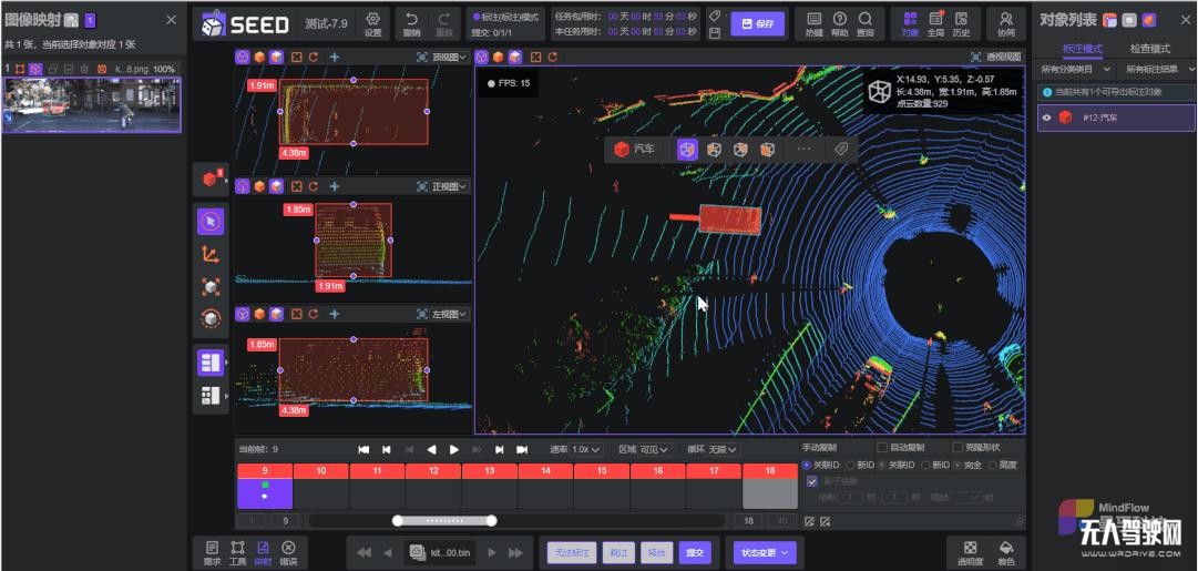 在自動駕駛數(shù)據(jù)標(biāo)注方面,作為行業(yè)唯一聚焦自動駕駛賽道的數(shù)據(jù)智能平臺,MindFlow SEED平臺既支持2D圖像場景下的車道線、車輛行人、泊車、全景語義分割等類型標(biāo)注,也同步支持3D點(diǎn)云場景下的車路協(xié)同、連續(xù)幀、點(diǎn)云融合、點(diǎn)云語義分割等標(biāo)注類型。