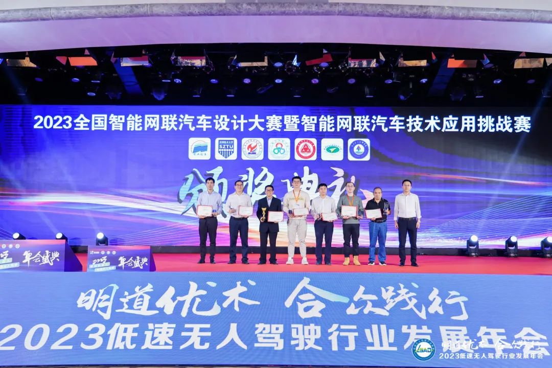 會上,“2023年全國智能網(wǎng)聯(lián)汽車設(shè)計大賽暨智能網(wǎng)聯(lián)汽車技術(shù)應(yīng)用挑戰(zhàn)賽”賽項(xiàng)獲獎人員表彰儀式盛大舉行。大賽共有來自全國16所高校的29各團(tuán)隊(duì)獲獎,低速無人駕駛產(chǎn)業(yè)聯(lián)盟秘書長、新戰(zhàn)略低速無人駕駛產(chǎn)業(yè)研究所所長李進(jìn)科現(xiàn)場為獲獎高校團(tuán)隊(duì)代表頒獎。