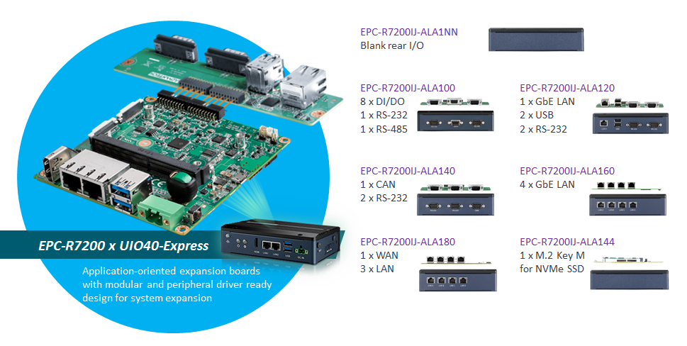 EPC-R7200內(nèi)部載板的連接器可彈性連接不同的UIO40-Express I/O擴展板,并有對應(yīng)搭配的EPC-R7200后I/O面板。(資料來源:研華科技)