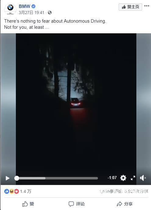 寶馬總部曾于3月27日在國外社交平臺臉書(Facebook)、推特(Twitter)及視頻網站Youtube上同時發(fā)布該英文廣告,稱寶馬正在研究高度無人化駕駛汽車。不過,寶馬中國官網、國內社交平臺均未發(fā)現該廣告。