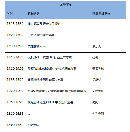 3D曲面玻璃/柔性折疊屏專場論壇議程 / 2019614  深圳會展中心1號館內