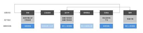視角決定了乘客和AV對(duì)話的關(guān)系。不同場(chǎng)景下,乘客和AV交流的內(nèi)容也會(huì)有所不同。行程開(kāi)始前,天空俯視視角可以幫助乘客更好的明確整個(gè)旅程的路線;行程中,乘客可以通過(guò)第三視角來(lái)獲得自己想要的解釋;行程結(jié)束后,較低的俯視視角可以幫助乘客對(duì)應(yīng)下車后的周邊環(huán)境。