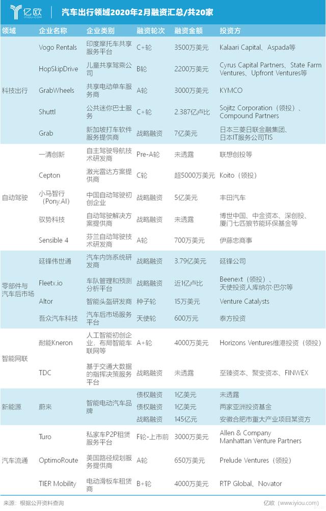 不過,今年2月的資本市場依然存在“驚喜”。據(jù)統(tǒng)計(jì),今年2月,一共有20家全球汽車企業(yè)完成融資。相比今年1月,一切似乎正趨于利好。