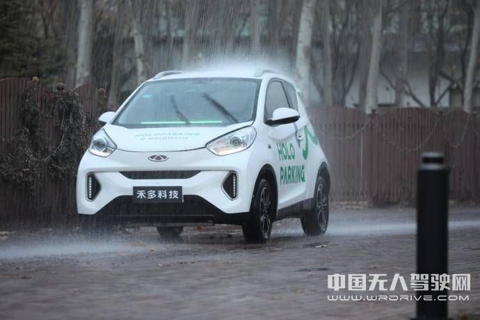 搭載了 HoloParking 的三款車同時接到泊車指令,兩輛停車,一輛取車,在模擬大雨天氣下(車輛行至途中,附近的水車開始澆水模擬雨天)完成了任務。