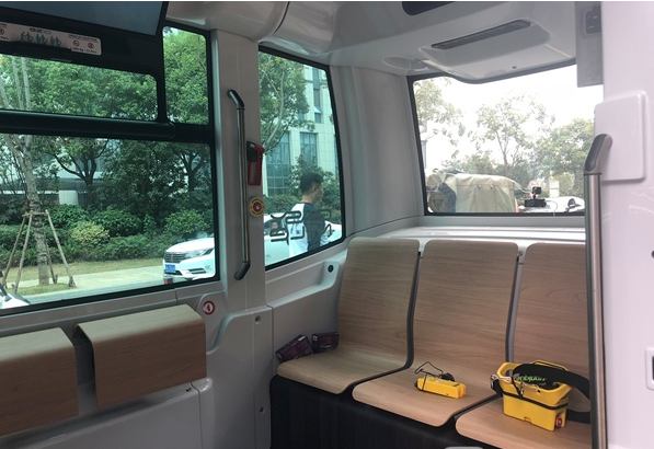 10月9號(hào)上午,由南京江北新區(qū)科技投資集團(tuán)投資的無(wú)人駕駛迷你公交車,在新區(qū)的產(chǎn)業(yè)技術(shù)研創(chuàng)園周邊進(jìn)行了首次市政道路測(cè)試。這款迷你公交車長(zhǎng)4米,寬2米,最多可乘載12人,車上沒(méi)有方向盤,行駛路線全靠后臺(tái)設(shè)定。作為電動(dòng)小客車,它的速度不算太快,最高時(shí)速被限定為每小時(shí)20千米。第一次走上市政道路,工作人員首先要做的是圍繞新區(qū)研創(chuàng)園,繪制路線圖,然后設(shè)置好站點(diǎn),上路測(cè)試。