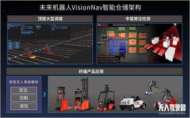 基于在視覺(jué)技術(shù)上的多年理解和沉淀,目前未來(lái)機(jī)器人已經(jīng)開發(fā)出五大類無(wú)人駕駛工業(yè)車輛標(biāo)準(zhǔn)產(chǎn)品,包括托盤式無(wú)人叉車、平衡重?zé)o人叉車、前移式無(wú)人叉車、電動(dòng)無(wú)人牽引車及內(nèi)燃重載無(wú)人拖車,適用于全品類存量工業(yè)車輛無(wú)人化升級(jí)的通用視覺(jué)無(wú)人駕駛模塊,和適用于多層次系統(tǒng)對(duì)接的中控調(diào)度系統(tǒng)及用于多對(duì)象識(shí)別的庫(kù)位檢測(cè)系統(tǒng),全流程、多維度幫助客戶以高性價(jià)比實(shí)現(xiàn)物流節(jié)點(diǎn)的倉(cāng)儲(chǔ)無(wú)人化。
