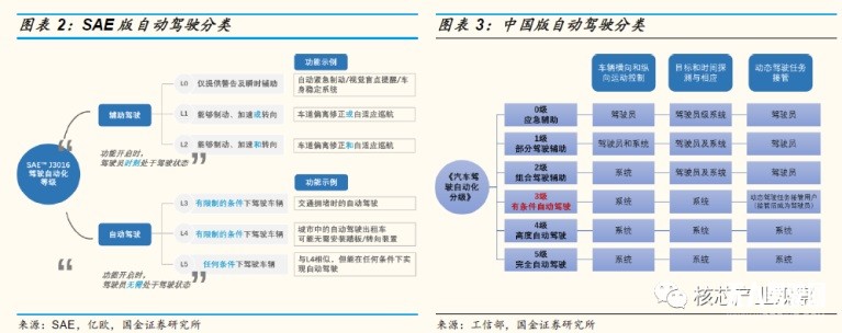 中美分類(lèi)標(biāo)準(zhǔn)對(duì)每個(gè)具體的駕駛自動(dòng)化功能分級(jí)結(jié)果基本一致。根據(jù)“開(kāi)啟自動(dòng)駕駛功能后,駕駛員是否應(yīng)該處于駕駛狀態(tài)”為標(biāo)準(zhǔn)。SAE 發(fā)布的自動(dòng)駕駛分級(jí)標(biāo)準(zhǔn)中,L3 級(jí)以上(包括 L3 級(jí))的功能才能稱(chēng)之為“自動(dòng)駕駛功能”;中國(guó)《汽車(chē)駕駛自動(dòng)化分級(jí)》中,以 L3 為界限,動(dòng)態(tài)駕駛?cè)蝿?wù)的接管者的主體發(fā)生改變。因此,L3 及以上級(jí)別才可被稱(chēng)為“高等級(jí)自動(dòng)駕駛”。即自動(dòng)駕駛以 L3 為分界線(xiàn),L3 以上(包括 L3)被稱(chēng)為自動(dòng)駕駛,L3 以下被稱(chēng)為輔助駕駛。