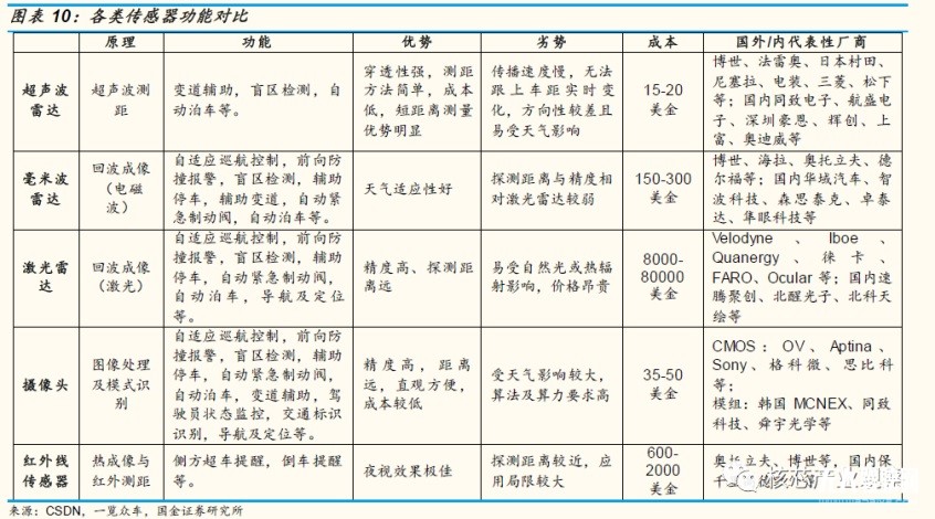 1)傳感器:目前主流的自動(dòng)駕駛傳感器以攝像頭和雷達(dá)為主。