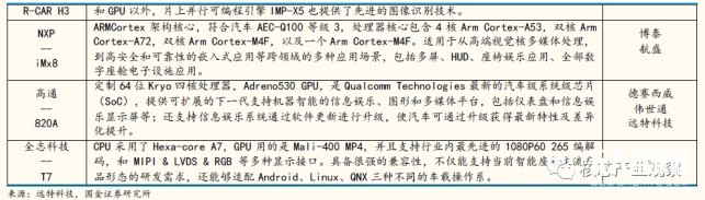VI 芯片為車(chē)載信息娛樂(lè)系統(tǒng)芯片,隨著自動(dòng)駕駛的技術(shù)的發(fā)展,IVI 逐步升級(jí)為智能駕倉(cāng),其包含的智能座艙電子的連接越來(lái)越多,包括V2X、WIF I、藍(lán)牙、4G、T-BOX,高精度地圖等。目前,各大 Tier1 正在推出或在研的智能座艙平臺(tái)方案,包括 NXP、瑞薩等傳統(tǒng)汽車(chē)芯片供應(yīng)商外,以及高通、英特爾等在內(nèi)的老牌芯片企業(yè)和國(guó)產(chǎn)芯片商全志科技,都在紛紛推出自家的智能座艙芯片產(chǎn)品。