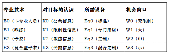 由于篇幅所限,這里不提供各因素的詳細(xì)定義,詳細(xì)信息請查閱ISO/IEC 18045:2008 附件B。
