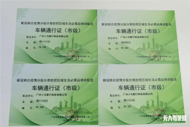 小馬智行自動(dòng)駕駛運(yùn)輸車隊(duì)通行證(部分)