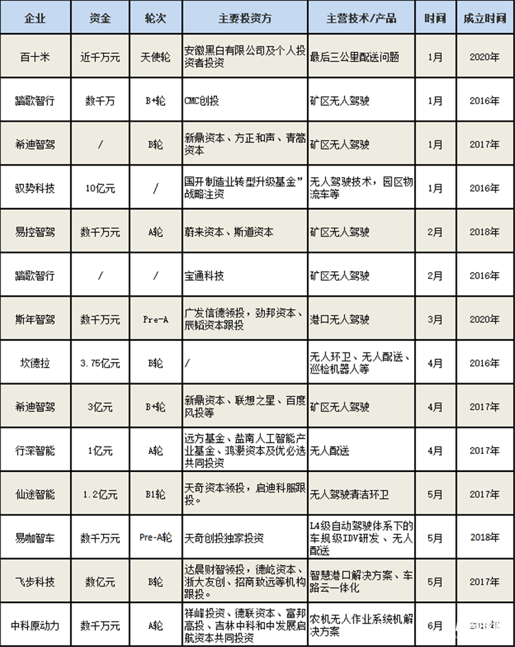表:2021年上半年低速無人駕駛行業(yè)融資情況(本表粗略統(tǒng)計,如有未完善之處,請指正?。?/span>