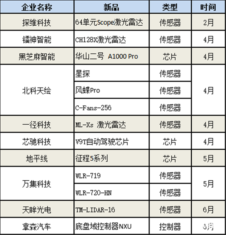 表:2021年上半年低速無人駕駛行業(yè)零部件企業(yè)新品發(fā)布情況(本表粗略統(tǒng)計,如有未完善之處,請指正!)