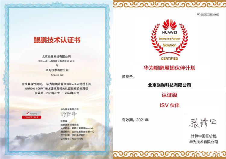 焱融科技YRCloudFile獲華為鯤鵬技術(shù)認證
