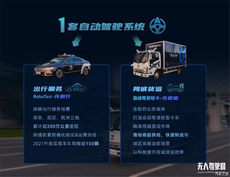 導(dǎo)語:在公司業(yè)務(wù)戰(zhàn)略中,元戎啟行還對(duì)其兩大業(yè)務(wù)板塊的相應(yīng)產(chǎn)品進(jìn)行了命名。RoboTaxi——自動(dòng)駕駛乘用車,命名為“元啟行”。自動(dòng)駕駛輕型卡車則被命名為“元啟運(yùn)”。元戎啟行已經(jīng)在深圳市中心開始了RoboTaxi試運(yùn)營,今年也將推進(jìn)自動(dòng)駕駛在同城貨運(yùn)中的應(yīng)用。