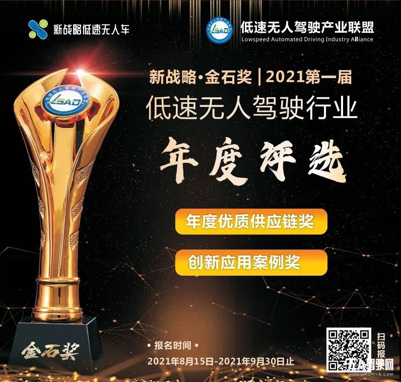 4、網(wǎng)絡投票占20%,評審專家評審占80%;最終評審結果于2021年11月公布,并在12月于武漢(時間、地點待確定)由聯(lián)盟主辦的《2021低速無人駕駛(LSAD)產(chǎn)業(yè)聯(lián)盟發(fā)展年會》上隆重頒獎。