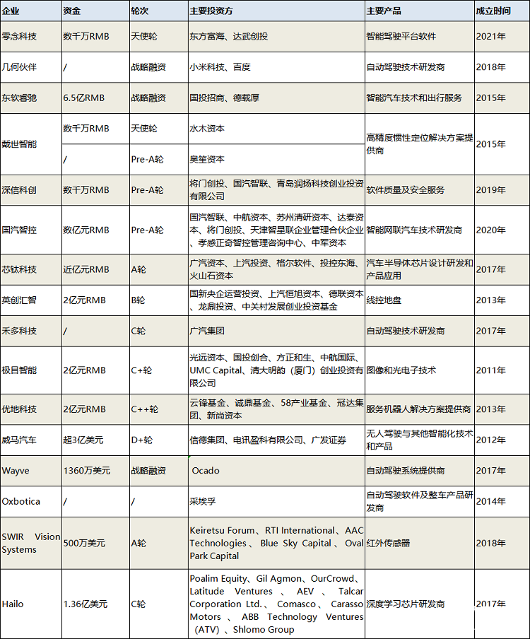 2021年10月無(wú)人駕駛領(lǐng)域融資情況(本表粗略統(tǒng)計(jì),如有未完善之處,請(qǐng)指正)