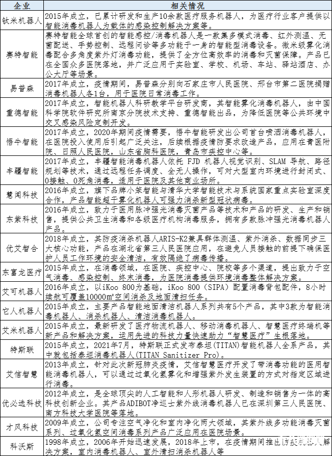 2020年新冠肺炎疫情暴發(fā)突然,為滿足醫(yī)療臨床的需要,除了已有醫(yī)用消殺機(jī)器人的公司加大量產(chǎn),還有不少企業(yè)臨危受命研發(fā)相關(guān)產(chǎn)品助力抗疫。