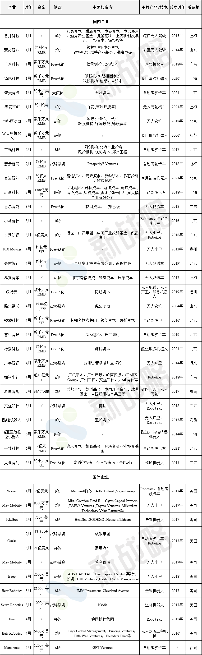 2022年上半年無(wú)人駕駛整車(chē)企業(yè)融資情況(據(jù)披露信息不完全統(tǒng)計(jì),未完善之處請(qǐng)指正)