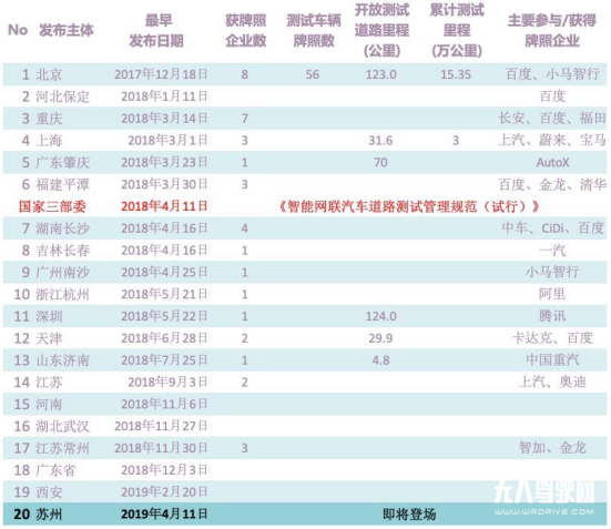 據(jù)新戰(zhàn)略低速無人駕駛產(chǎn)業(yè)研究所了解,從自動駕駛測試地方政策發(fā)布時間來看,蘇州最早于2019年4月發(fā)布其智能駕駛路測區(qū)域和頒發(fā)首批測試牌照,是全國第20個城市。