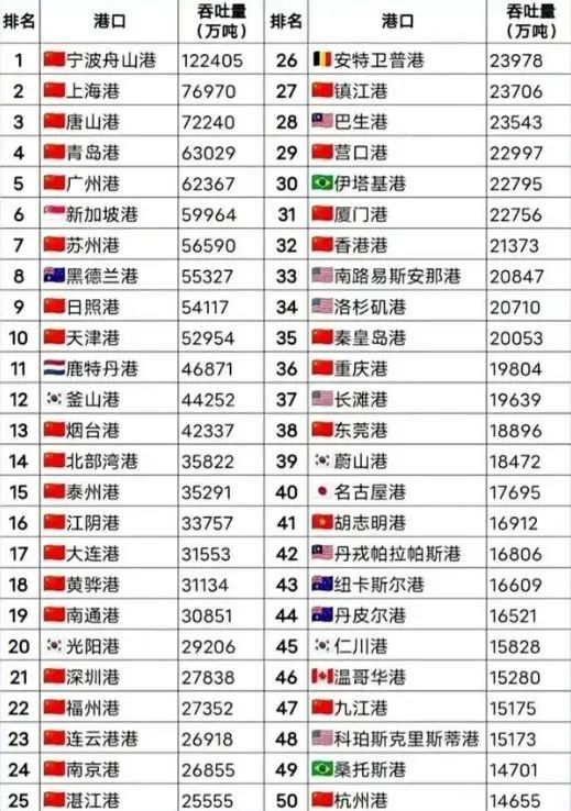 近期,2022年全球50大港口排行榜出爐,中國港口占據(jù)29席。