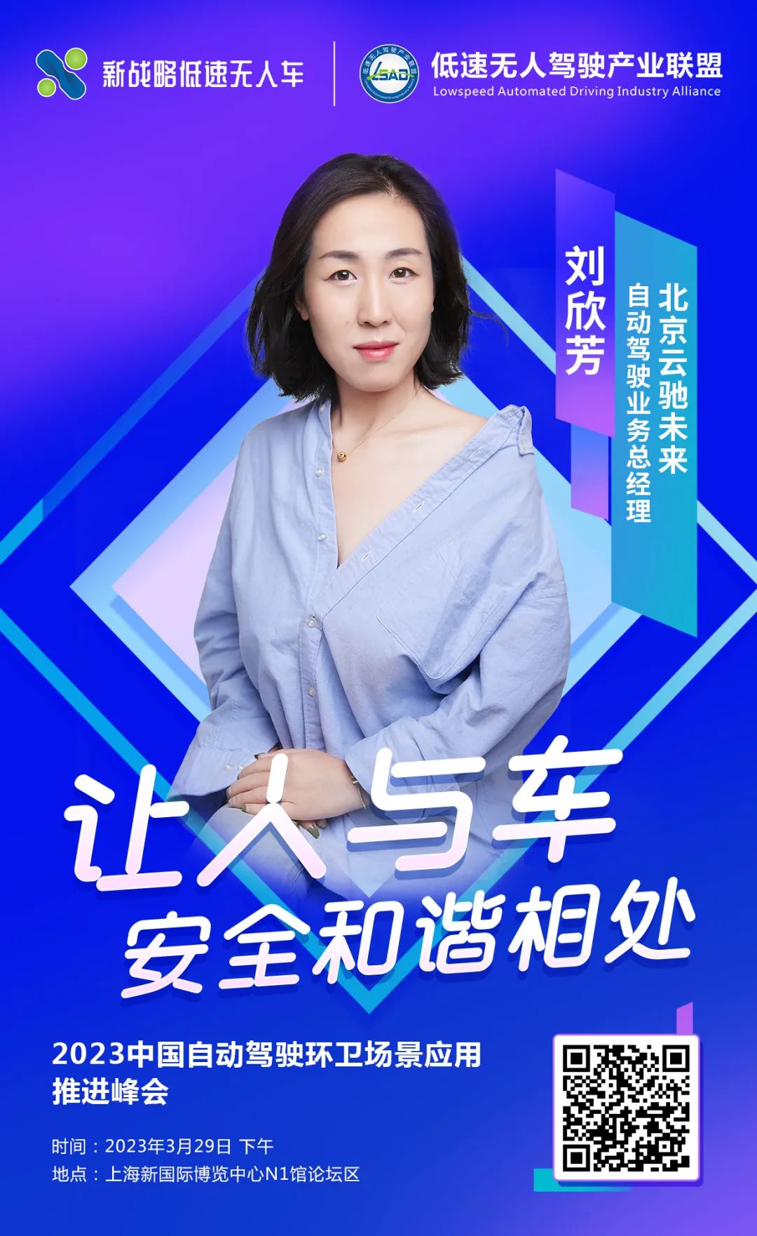 3月29日,在“2023中國自動駕駛環(huán)衛(wèi)場景應(yīng)用推進(jìn)峰會”上,云馳未來自動駕駛業(yè)務(wù)總經(jīng)理劉欣芳將帶來《讓人與車安全和諧相處》主題演講,敬請期待!
