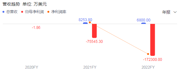 圖森未來本來預告2月8日要發(fā)布2022財年年度報告,但未能按時發(fā)布,且至今仍未發(fā)布。目前公司僅公布了2022年前三季度財報,根據公開數據,2022年前三季度總營收751.1萬美元,歸母凈利潤-3.34億美元。