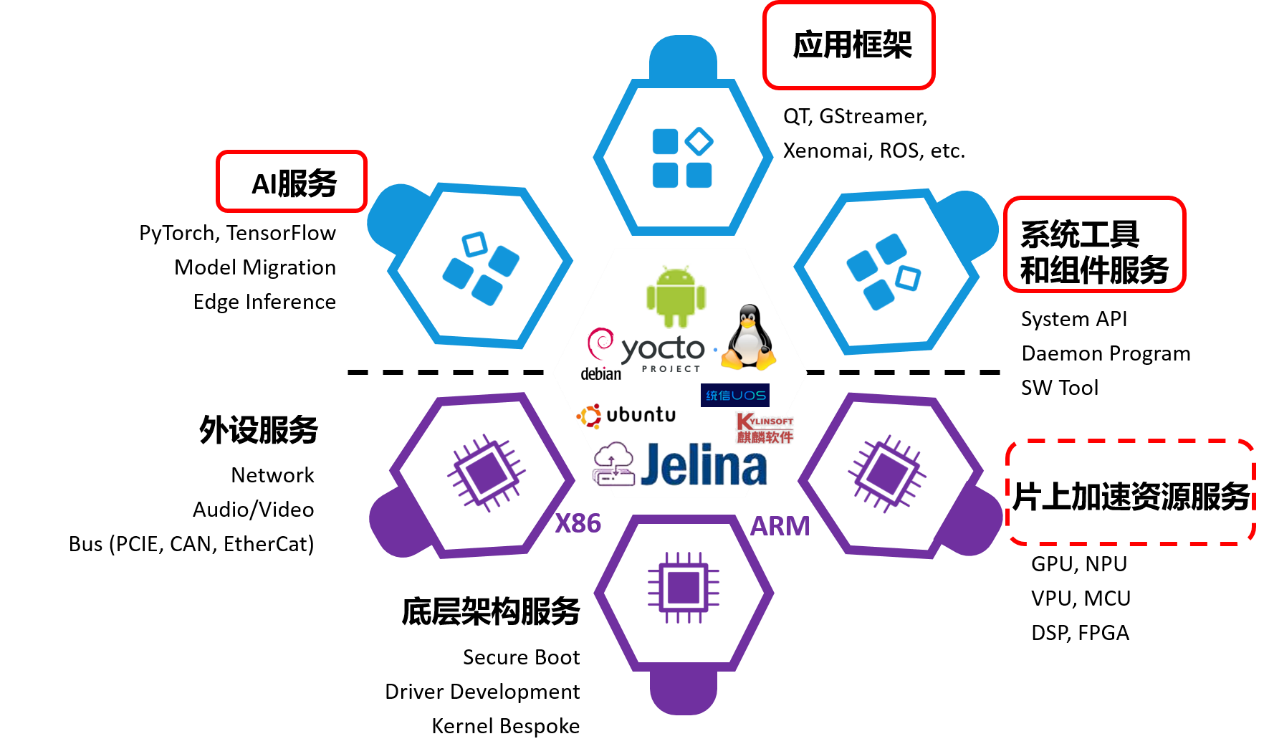 每個行業(yè)都會有截然不同的獨立需求,所以Jelina也對此準(zhǔn)備了兼具深度與廣度的技術(shù)儲備,為客戶從傳統(tǒng)的外設(shè)服務(wù)、Linux底層系統(tǒng)服務(wù)到已然成熟的種種片上加速單元應(yīng)用、系統(tǒng)層工具與組件服務(wù),再到不斷迭代升級的應(yīng)用框架服務(wù),最后收斂到底層成熟、未來光明的細(xì)分賽道——邊緣AI服務(wù)。研華Jelina在應(yīng)對好物聯(lián)網(wǎng)綜合應(yīng)用場景之外,它依然扎根為用戶提供嵌入式邊緣運算軟硬件服務(wù)。