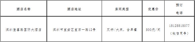 因會議期間(會議酒店:深圳登喜路國際大酒店)酒店房間緊張,請各參會嘉賓盡早進行酒店預(yù)訂。