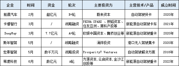 2023上半年國內(nèi)自動駕駛卡車企業(yè)融資情況(據(jù)公開信息不完全整理,未完善之處請指正?。?/em>