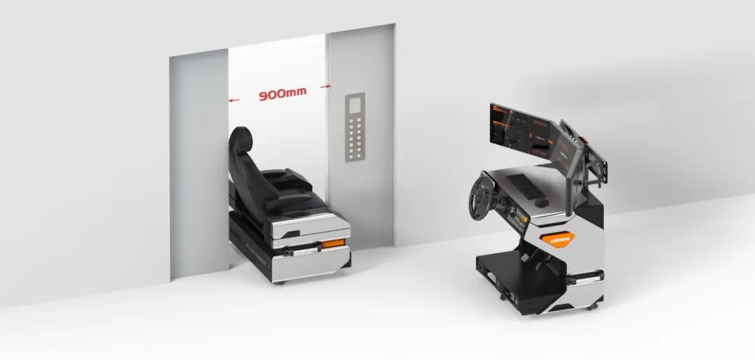 絕大多數(shù)用戶放置駕駛艙時,需要上電梯,或者進入狹窄門道。傳統(tǒng)駕駛艙或者模擬器遇到這一困難時,難以解決,甚至需要對整臺產(chǎn)品進行拆解才可分批上樓,這極大地增加了客戶的安裝和運營成本。T1采取了分體式設計,5分鐘實現(xiàn)快速拆解,單體模塊可通過窄至900mm寬度的過道,方便用戶將T1通過狹窄空間門道。