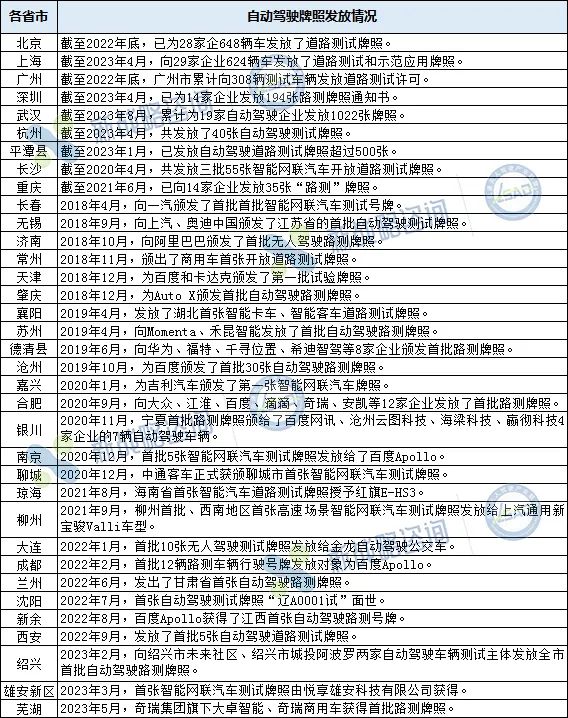 作為自動駕駛技術(shù)創(chuàng)新的前沿地區(qū),中國國內(nèi)一直在積極推進(jìn)自動駕駛路測牌照的發(fā)放工作。截至2023上半年,中國已經(jīng)有超33座城市發(fā)放了自動駕駛路測牌照。