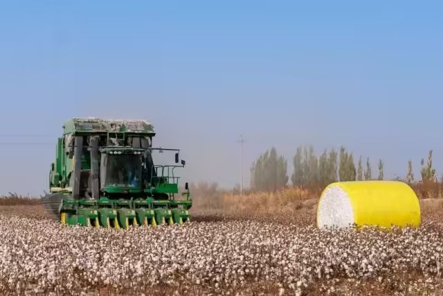 新疆地廣人稀,棉花種植規(guī)模大,采收工作量繁重,而采棉機技術(shù)操作要求高,工作強度大。當(dāng)前是棉花的采收期,在新疆生產(chǎn)建設(shè)兵團第八師的農(nóng)場棉田里,投用了“無人駕駛采棉機”助力采收。