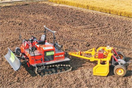 在農(nóng)場第六管理區(qū),新引進的履帶式拖拉機等農(nóng)用機械完成無人化改裝,實現(xiàn)遙控啟動、精度行走、智能作業(yè)、機具回庫等環(huán)節(jié)的無人化操控,大大節(jié)省人力成本,提升作業(yè)標(biāo)準(zhǔn)和效率。