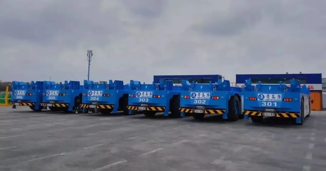 青島港自動化碼頭:83臺純電可舉升AGV