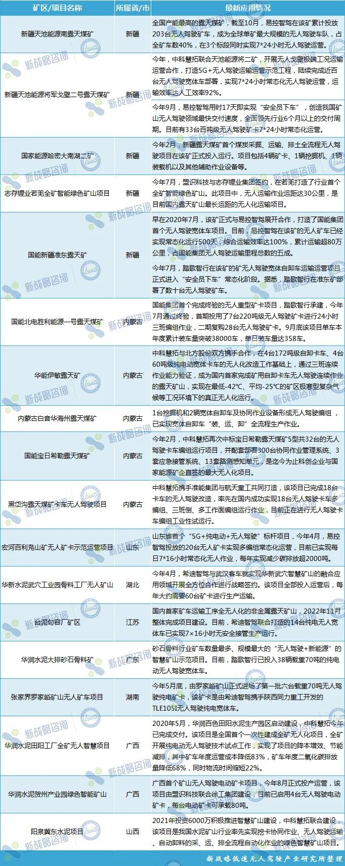 2023年國內(nèi)新增及重點礦區(qū)無人駕駛項目最新情況(未完善之處請指正?。?/span>