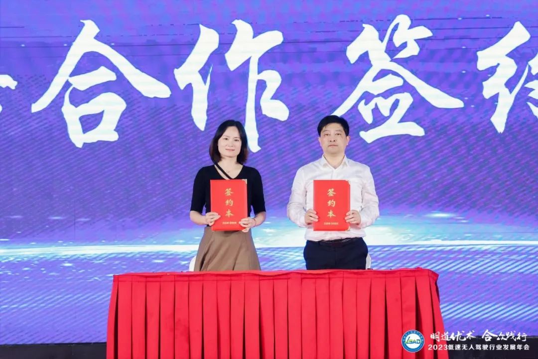 在2023低速無(wú)人駕駛行業(yè)發(fā)展年會(huì)上,新戰(zhàn)略公共服務(wù)事業(yè)部和陸家鎮(zhèn)人民政府代表現(xiàn)場(chǎng)簽署了戰(zhàn)略合作協(xié)議,雙方將進(jìn)一步深化聯(lián)系,為低速無(wú)人駕駛聯(lián)盟企業(yè)在該鎮(zhèn)的業(yè)務(wù)布局、應(yīng)用落地等暢通溝通渠道。