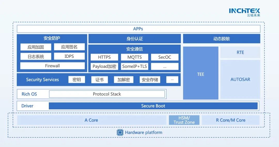 云馳未來提供信息安全技術(shù)框架(Cyber Security framework),包括整車級(jí)信息安全技術(shù)方案、零部件級(jí)信息安全技術(shù)方案、關(guān)鍵技術(shù)實(shí)施規(guī)范、軟件SDK。為智能網(wǎng)聯(lián)汽車提供統(tǒng)一網(wǎng)絡(luò)安全服務(wù),提升網(wǎng)絡(luò)安全防護(hù)能力的同時(shí),保障安全合規(guī)要求,為車型開發(fā)提供標(biāo)準(zhǔn)、可靠的安全技術(shù)支撐。