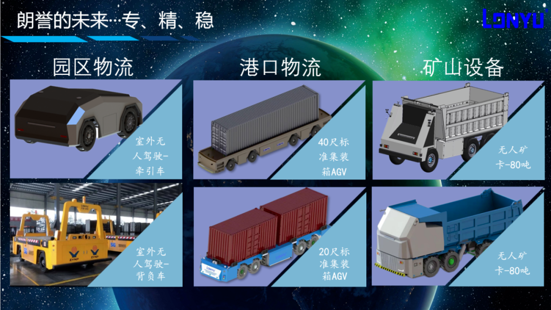 朗譽機(jī)器人作為一家全球領(lǐng)先的重載AGV公司,集研發(fā)、設(shè)計以及生產(chǎn)制造為一體。專業(yè)為客戶提供以智能物流技術(shù)、工業(yè)物聯(lián)網(wǎng)和大數(shù)據(jù)中心等技術(shù)做支撐的智能物流管理系統(tǒng),解決超重、超長、超大物料的智能化運輸問題,業(yè)務(wù)范圍涵蓋航空、航天、軍工、高鐵、工程機(jī)械裝備、風(fēng)電、船舶、變壓器、港口、冶金、水電設(shè)備、重卡、模具等眾多行業(yè)領(lǐng)域,目前產(chǎn)品以重型AGV為主,設(shè)計載重可達(dá)1000噸,其產(chǎn)品具備“伺服控制系統(tǒng)、無線通訊系統(tǒng)、同步液壓系統(tǒng)、電力監(jiān)測系統(tǒng)、安全防護(hù)系統(tǒng)、智能調(diào)度系統(tǒng)、故障自診斷系統(tǒng)”八大前沿科技。該發(fā)展路線就是基于“重載AGV”“脈動式生產(chǎn)線”“室外無人駕駛”三根線編織成一張“網(wǎng)”,進(jìn)而捕獲“未來”。