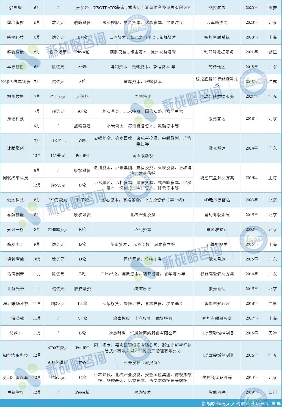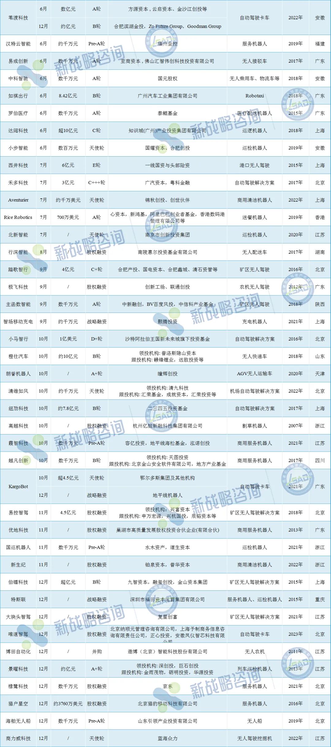 2023年國內(nèi)無人駕駛領域融資情況(據(jù)公開信息,新戰(zhàn)略低速無人駕駛產(chǎn)業(yè)研究所不完全整理)