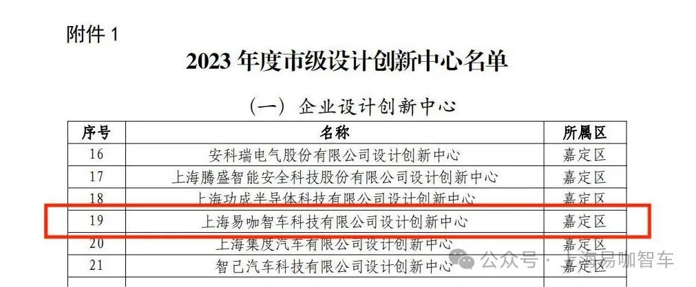 易咖智車獲得上海市“市級設計創(chuàng)新中心”認定