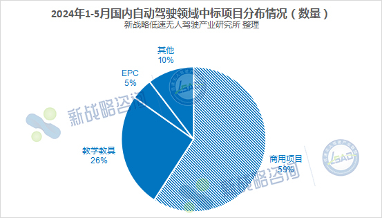 另外,今年 1-5 月中標(biāo)項(xiàng)目中,商用項(xiàng)目也明顯增多。據(jù)新戰(zhàn)略低速無人駕駛產(chǎn)業(yè)研究所不完全統(tǒng)計(jì),共有 74 個(gè)項(xiàng)目,占比 59%,而去年這一數(shù)值僅為 48%。