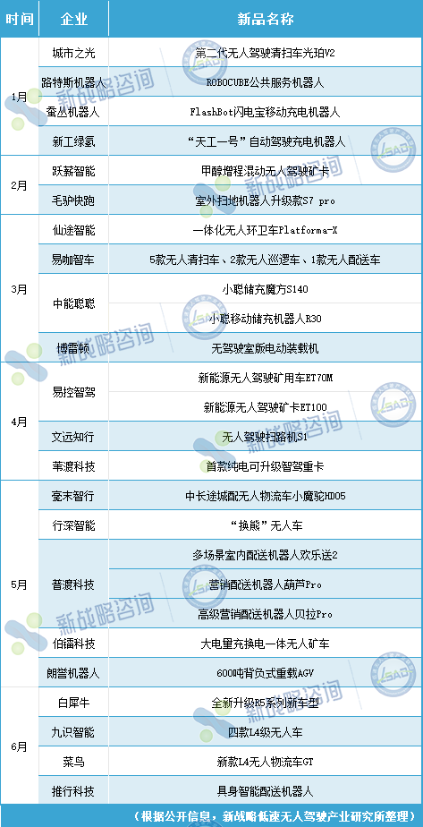 2024上半年國內(nèi)無人駕駛領(lǐng)域整車新品一覽(根據(jù)公開信息整理,如有遺漏,請指正)