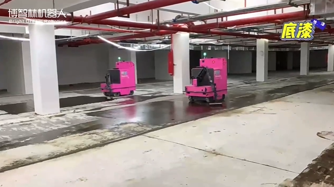 地坪漆涂敷機(jī)器人結(jié)合激光雷達(dá)與BIM技術(shù)進(jìn)行定位導(dǎo)航和智能路徑規(guī)劃,可全自動(dòng)完成整個(gè)地下車庫環(huán)氧地坪漆的底漆、中涂漆以及面漆的施工。