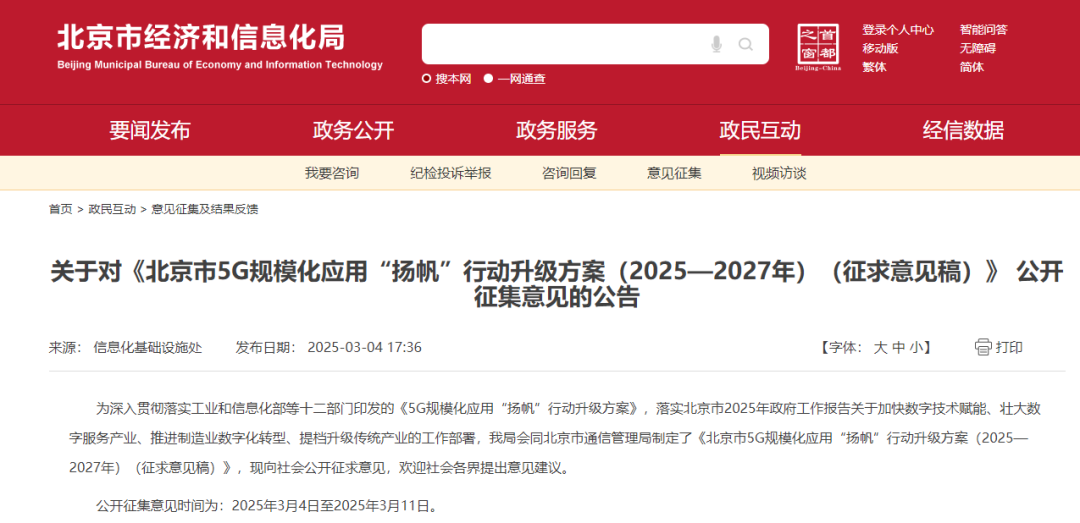 3月4日,《北京市5G規(guī)?;瘧?ldquo;揚帆”行動升級方案(2025—2027年)(征求意見稿)》 公開征集意見。其中提到,推動“5G上車”,鼓勵汽車前裝5G通信模塊,助力智能網(wǎng)聯(lián)汽車智駕、智艙提質(zhì)升級。