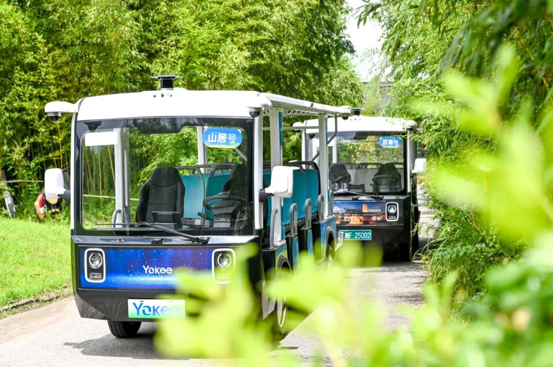 在百翠山居莊園的實景演示中,Yokee 01無人駕駛觀光車展示了復雜環(huán)境下的可靠性能。車輛搭載多傳感器融合系統(tǒng),在竹林窄道與陡坡彎角實現(xiàn)厘米級定位與動態(tài)避障?,F(xiàn)場實測數(shù)據(jù)顯示,在高峰時段,車輛調(diào)度效率提升40%,游客平均候車時間縮短至5分鐘以內(nèi),并且可以實現(xiàn)度假村24小時接待能力。