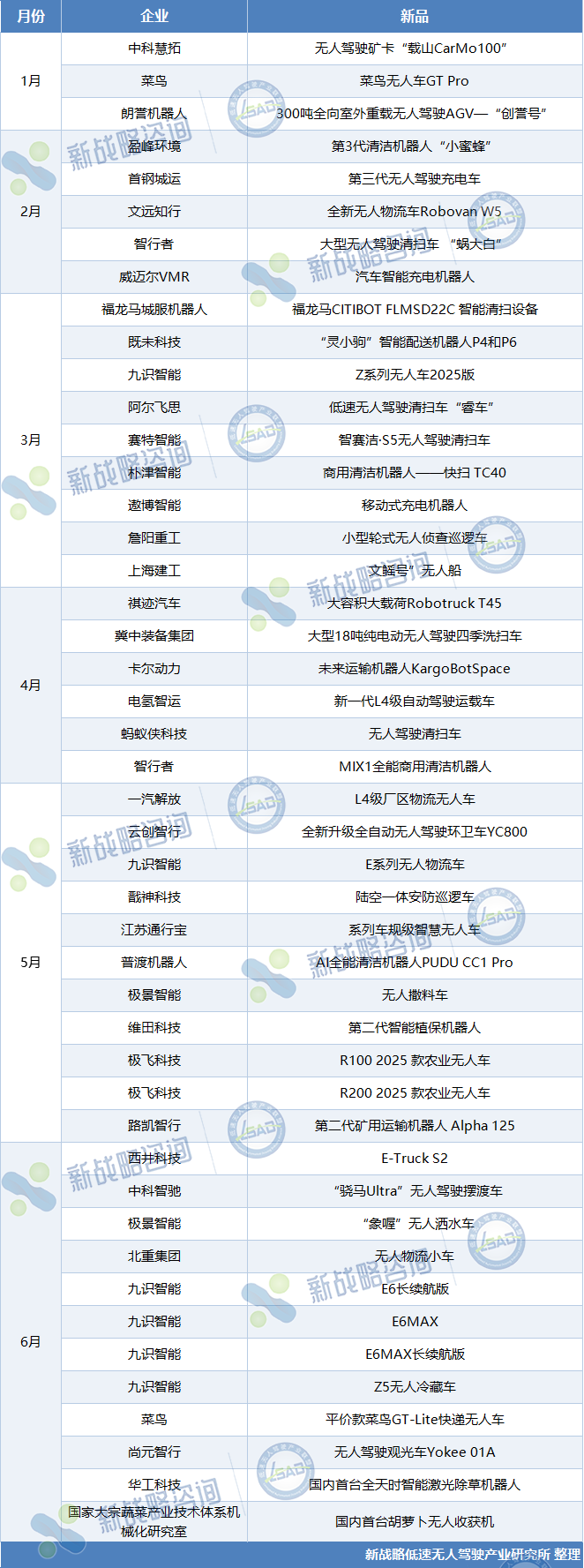 2025上半年國內(nèi)無人駕駛領(lǐng)域整車新品(根據(jù)公開信息整理,如有遺漏,請指正)