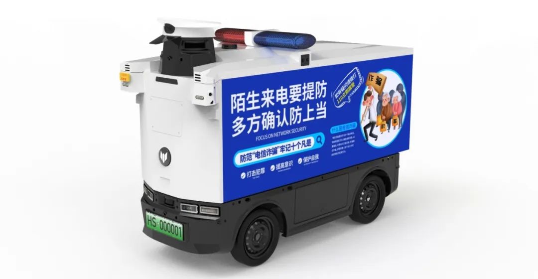其最新推出的虎鯨F1公開道路無人巡邏車,聯(lián)合九識智能打造,支持城市主干道完全無人駕駛混行能力,多傳感器融合感知,可通過人臉、車牌識別,實(shí)時畫面快速取證,精準(zhǔn)執(zhí)法。這款無人巡邏車的儲物空間還能裝配防爆頭盔、防爆橡膠管、防爆盾牌等執(zhí)法裝備,以便在緊急情況下處置突發(fā)事件,進(jìn)一步增強(qiáng)了城市安防的實(shí)戰(zhàn)能力。