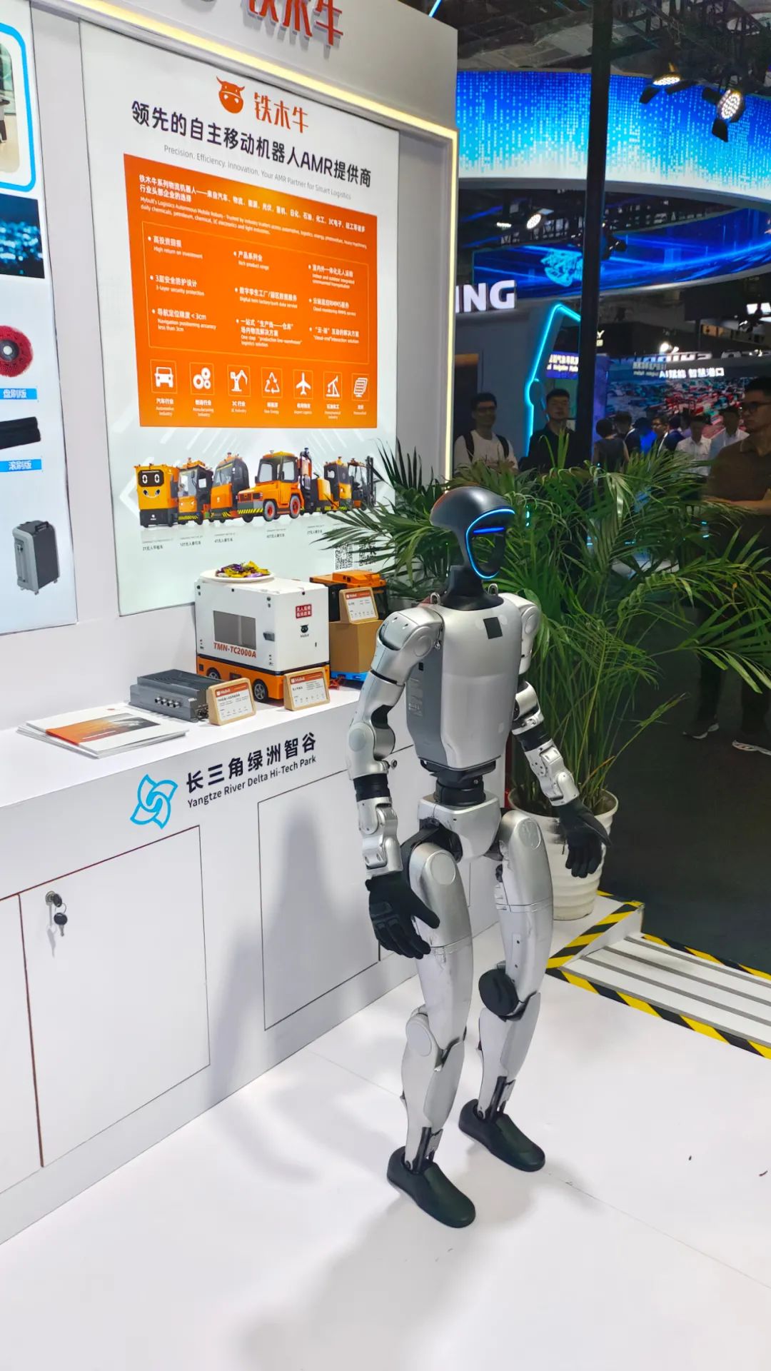 鐵木牛此次展出了其核心器件矩陣,包括無人運輸車、人形機器人以及PNS機器人定位導航系統(tǒng),重點呈現(xiàn)在AMR和具身智能場景下的融合能力。