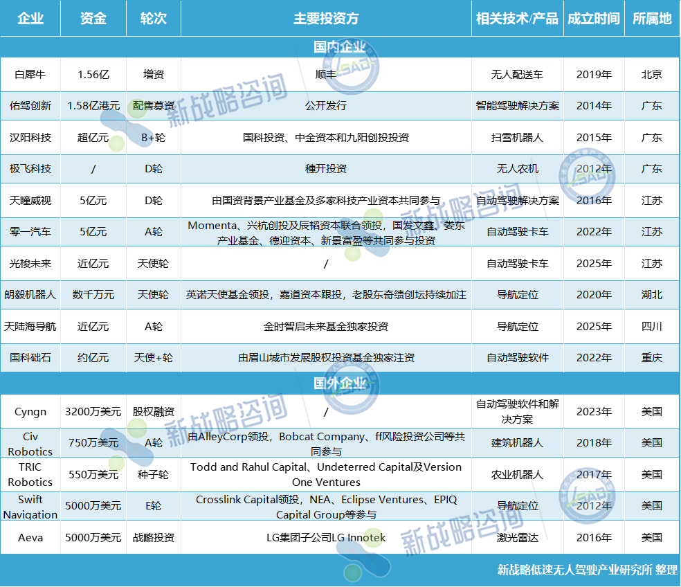 2025年7月無人駕駛領(lǐng)域融資情況(根據(jù)公開信息整理,未完善之處請指正!)